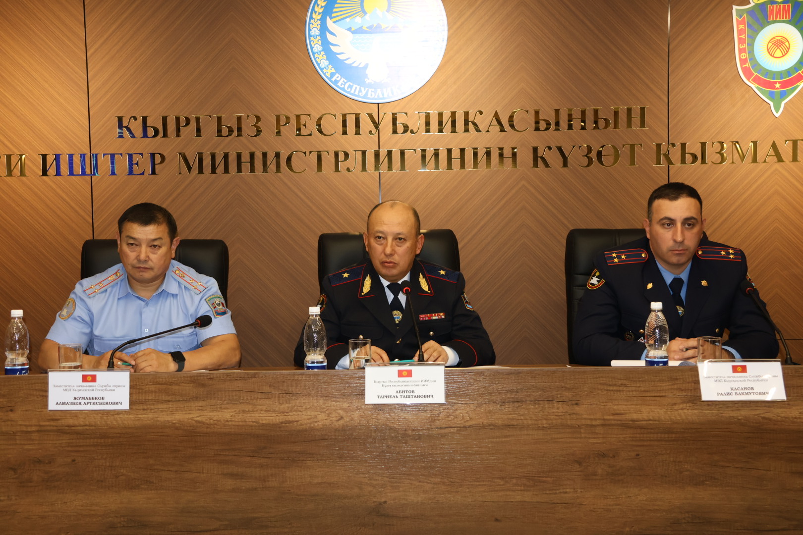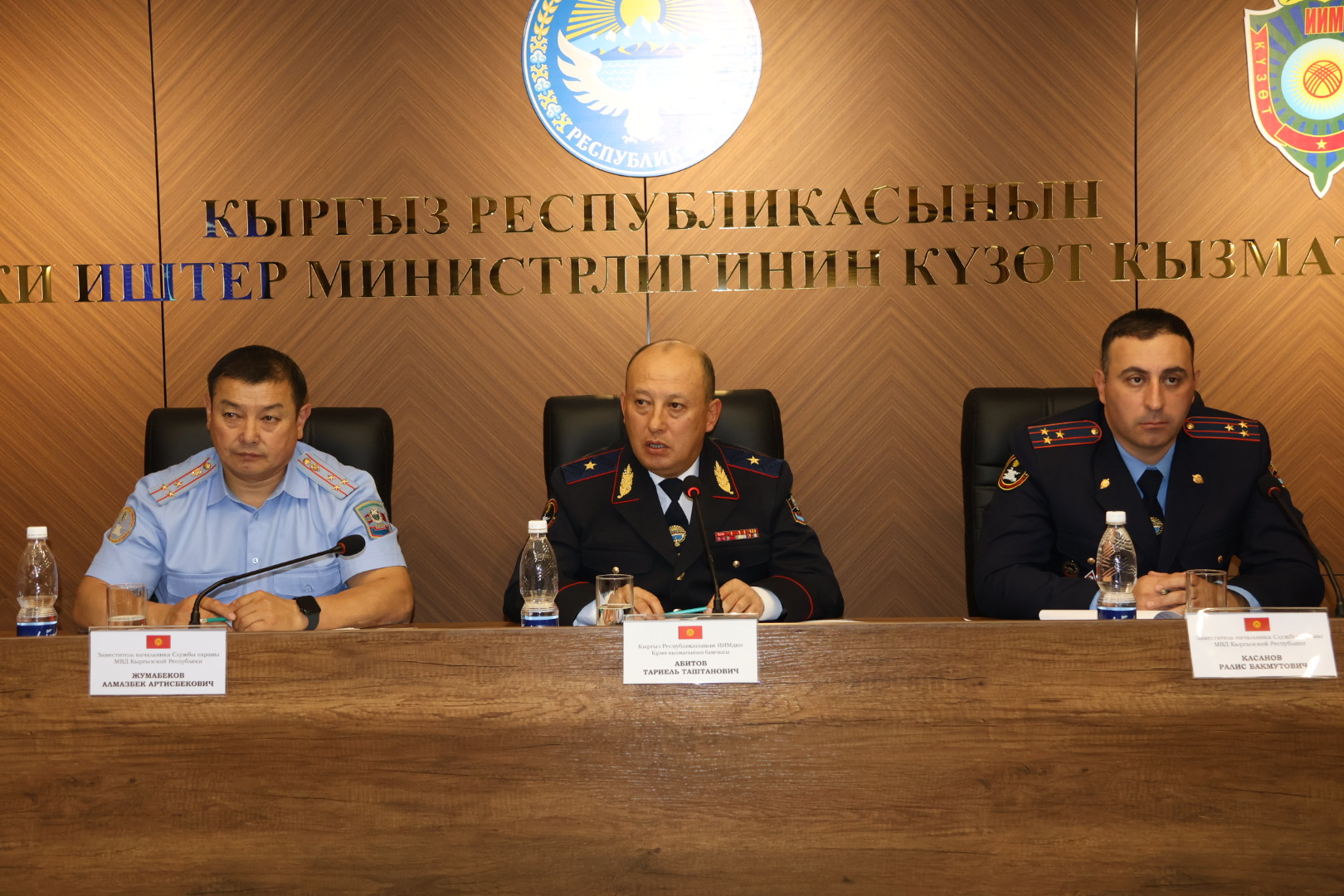 2025-жылдын 10-октябрында Кыргыз Республикасынын Ички иштер министрлигинин Күзөт кызматынын 2025-жылдын 9 айындагы ыкчам-кызматтык жана уюштуруу-башкаруучулук ишмердүүлүгүн жыйынтыктоочу ыкчам кеңешмеси болуп өттү. Кеңешмеге ИИМдин Күзөт кызматынын башчысы, милициянын генерал-майору Тариель Абитов, анын орун басарлары жана республиканын бардык аймактарындагы бөлүм жана бөлүмчөлөрдүн башчылары катышты. Жыйындын жүрүшүндө Күзөт кызматынын 2025-жылдын 9 айындагы ишмердүүлүгүнүн жыйынтыгы чыгарылып, аткарылган иштер боюнча кеңири талкуу жүрдү. Анда, түзүм бөлүмдөрдүн милиция менен өз ара аракеттенүүсү, жарандардын батирлери менен жеке турак жайларын кайтарууга алуу, ошондой эле кызматтык тартипти бекемдөө, мыйзам бузуу фактыларын алдын алуу жана ИИМдин коллегиясынын жыйынында берилген тапшырмаларды өз убагында жана сапаттуу аткаруу боюнча иштерге өзгөчө көңүл бурулду. Мындан тышкары, ИИМдин Күзөт кызматынын өздүк курамы тарабынан коррупциялык көрүнүштөргө жол бербөө жана аларды алдын алуу чаралары талкууланды. «Ар бир жетекчи өз кызматкерлеринен мыйзамдуулукту так сактоону жана жарандардын коопсуздугун камсыз кылууда жогорку жоопкерчилик көрсөтүүнү талап кылууга тийиш!» – деди башчы. Кеңешменин жыйынтыгында тийиштүү тапшырмалар берилип, аларды аткаруу мөөнөттөрү так көрсөтүлдү. ИИМдин Күзөт кызматынын Басма сөз кызматы